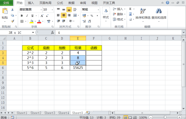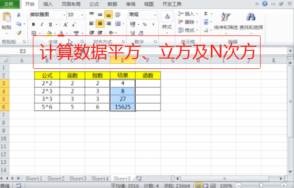 如上图所示,我们分别要计算2^2、2^3、3^3、5^6等数值操作,在我们的底数和指数都是随机数的情况下,如果我们手动进行计算就会显的非常的麻烦,像5^6结果为15625,数值会显的非常大。今天我们就来学习利用Power函数来进行快速运算。
