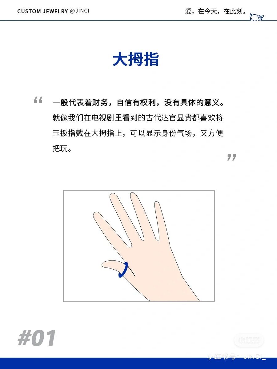 不同的手指佩戴戒指,分别代表着不同的寓意: