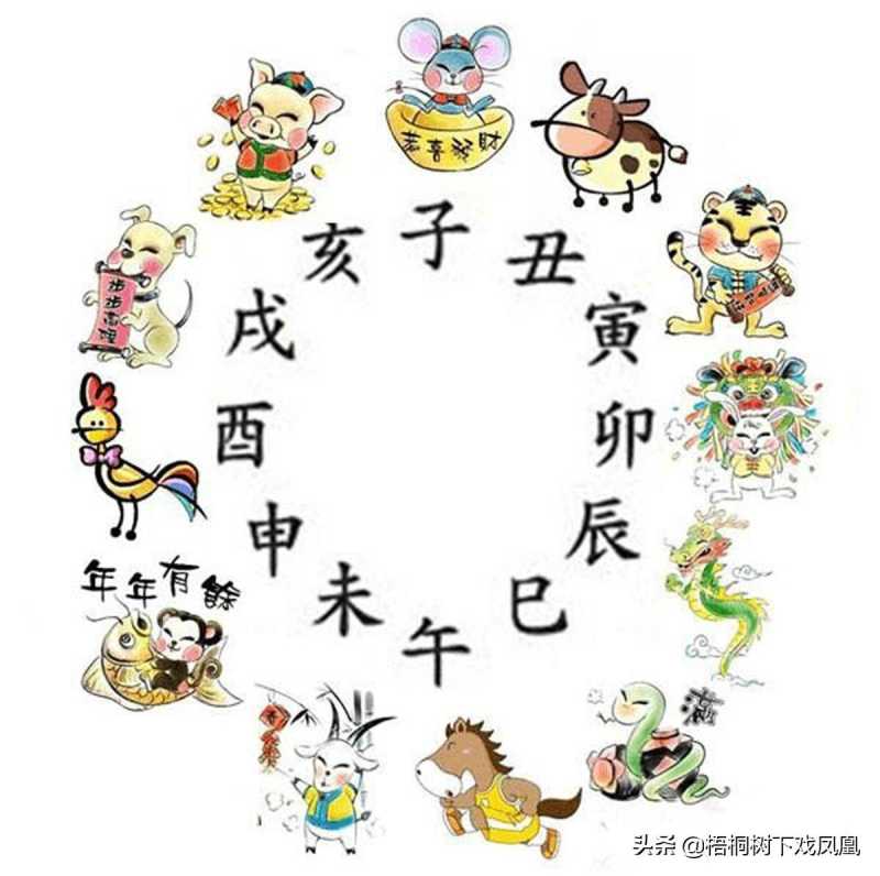 子鼠、丑牛、寅虎、卯兔、辰龙、巳蛇、午马、未羊、申猴、酉鸡、戌狗、亥猪