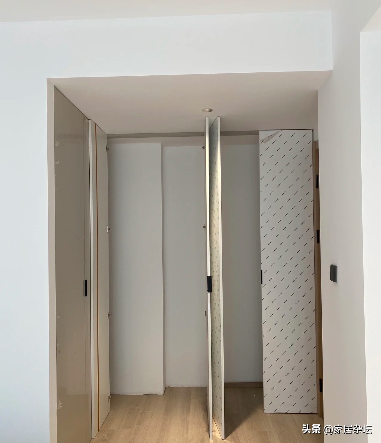 不像传统的定制衣柜的柜门那么好看。例如一门到顶的柜门,的确非常好看。