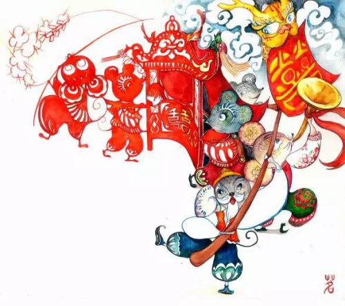 以上可知,各地习俗虽不一,有的置冷饭、有的送米盐、有的夜不点灯、厨不动刀等等,但是它们都承载着人们驱鼠或求子的美好愿望,且在中国本土化的过程中产生了自身的故事文本。“老鼠嫁女”不仅仅是美好祈愿,也透露出广大民众的生活情趣。拟人化的人类嫁娶行为,诙谐的表达,总能让人忍俊不禁,为之一笑。