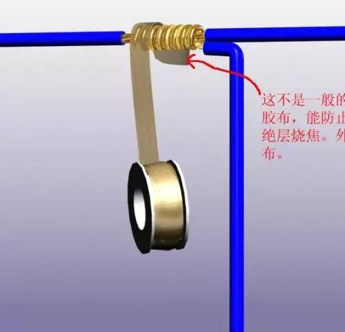 下面是第二种接法(防火胶布隔离法),多用于吊项内,或比较高能的工程中,主线不能能弄断,符线绕主线6–8周,吊顶内的射灯,一路上要有很多灯就是这样接法,用防火胶布缠在里面,它的作用就是防止电打火烧坏东西,这是在吊顶内很重要。外面再用绝缘胶布缠绕。