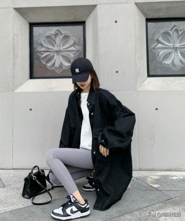 本身腿型短粗或者腿型不直的女生,建议直接选择过膝长度的外套,选择敞开的穿法可以修饰腿型侧边的轮廓,厚底款式的运动鞋色彩很丰富,任意选择一款可以呼应外套的色彩,用纯黑色的瑜伽裤优化小腿根部的曲线,这样的穿法也特别显瘦。