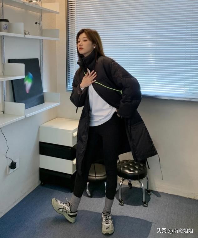 今年流行的“运动鞋+瑜伽裤”,配羽绒服简直天生一对!时髦显瘦,身材微胖或者是小个子女生都可以穿,难怪潮人们都很爱!