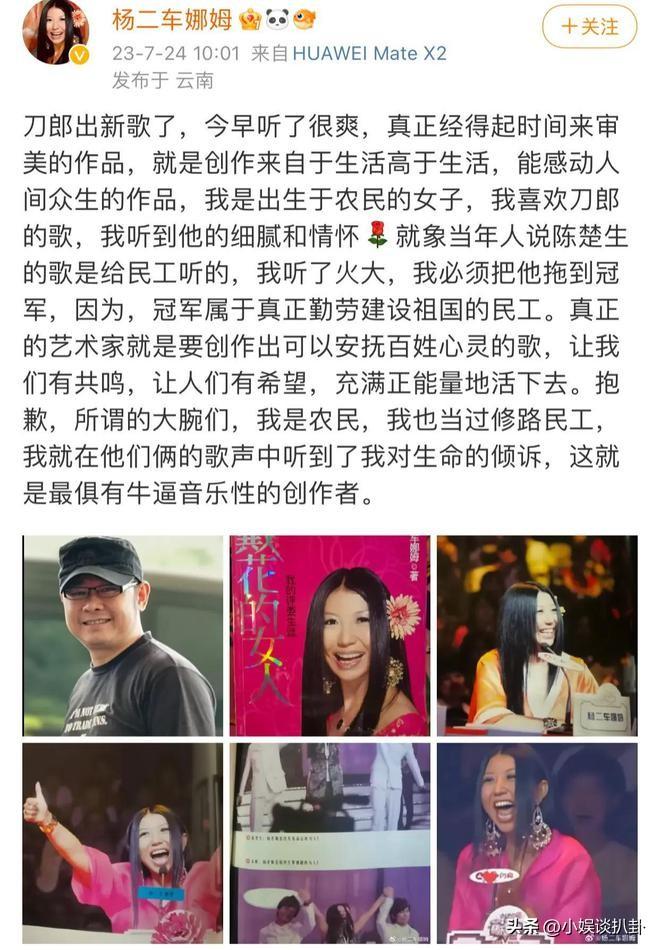 她在文章中对刀郎的作品表达了赞赏,这也引发了关于两人关系的猜测。