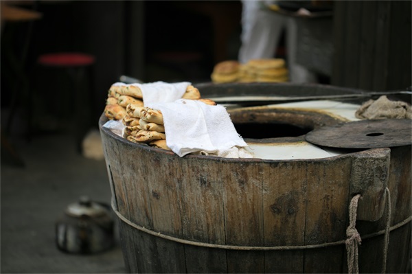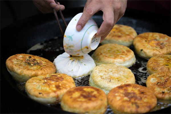 “大饼油条”是无数江南人从小吃到大的早餐,如今想起依然回味绵长。当我看到黑色铁皮桶炉中一坨坨洒满了白芝麻的饼团,便忍不住咽口水。师傅一边烘烤着大饼,一边在金黄色的热油中炸油条。刚出炉的游埠酥饼大饼散发着芝麻与香葱的迷人香气,口感又酥又脆。它不但缓解了油条的油腻,更是佐餐佳品。