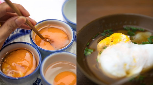 “肉沉子”是游埠当地才有的一道特色祖传小吃。它底汤清甜、鸡蛋滑嫩、肉末鲜美。烹饪它的师傅有着绝佳的,能在生蛋黄塞猪肉末的手艺。
