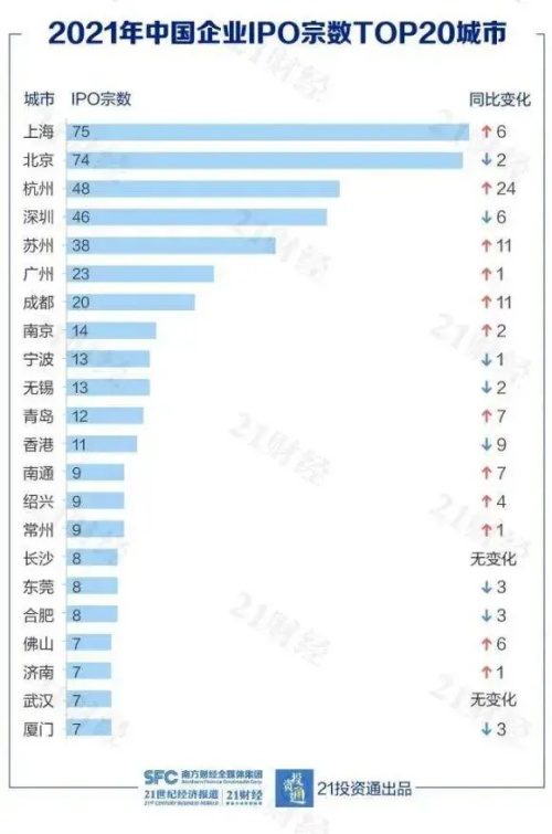 苏州经济转型相对成功,体现在发明专利获取量和IPO增量都很好。2021年,苏州新上市公司数量超过广州、成都、南京等城市,跻身大陆前六名。