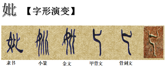 妣字用来称呼母亲,这个字的演变过程,既是象形字,也是会意字和形声字,读音通“比”。甲骨文的时候是“匕”,像一个跪拜的女性形象。到金文时“匕”字演变的更像女性的外形曲线,因为那时有钱的男子可以娶妻纳妾,所以用了双“匕”,前面又加了部首“女”,表示妻妾成群、和睦相处之意。子女都是这些妻妾生育的,所以妣开始意指为母亲。