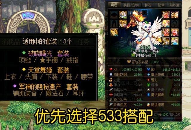 比如同系列「天堂舞姬」头肩、下装部位,套装效果基本一致,首饰部位选择「破晓曦光」项链装备,三个部位加起来大概1500万,一定要购买改造4等级,相当于增幅10。