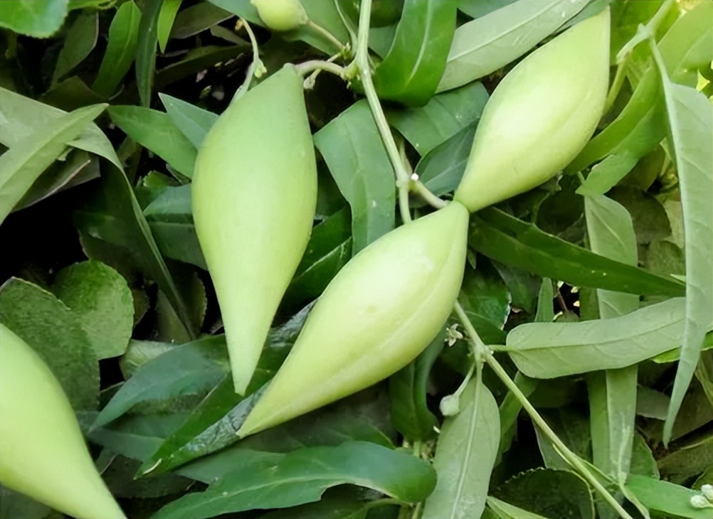 同样是一种长得非常奇特的野果,它的外形有点像牛角,有些还是成对的。这种野果在我的家乡也叫它“奶瓜”,这是因为它的果实中会流出类似牛奶一样的白色汁液。