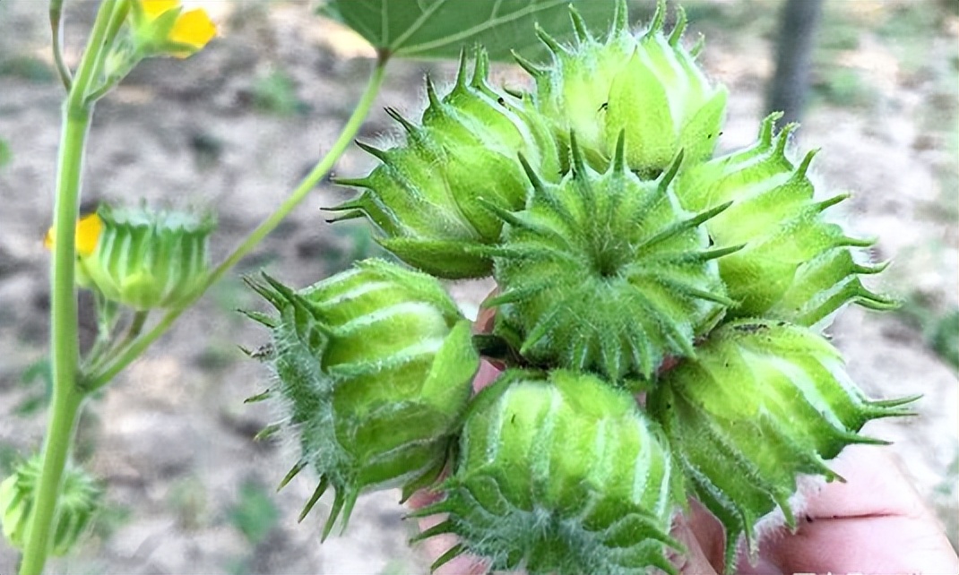 磨盘果的学名叫苘麻,因为这种植物在国内的分布很广泛,所以名字也非常多,据笔者所知道的就有十几个。比如白麻、青麻、野棉花、车轮草、野火麻、野芝麻、野苘、鬼馒头草等等。