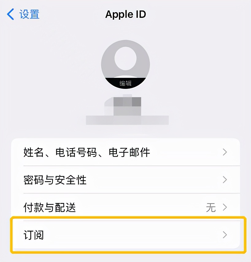 在Apple ID页找到【订阅】按钮,再次点击,跳转到订阅服务页。
