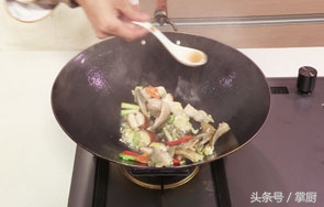 8 再放入切好的牛肚,加料酒炒香。