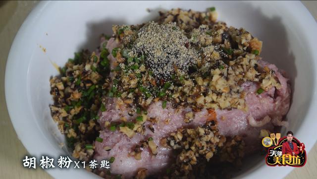 第一步:香菇提前泡发好,然后剁碎,接着将肉末放到一个较大的汤盆里面,加入1茶匙食盐,加入1汤匙生抽,加入1汤匙蚝油,加入1茶匙胡椒粉,加入2小勺食油,加入3汤匙淀粉,然后用筷子顺时针搅拌至肉末起劲,然后用手摔打几次肉末,这样我们的肉馅就做好了!