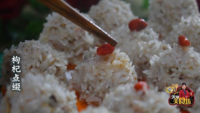 第四步:枸杞提前用开水泡发好,等糯米丸子蒸好之后,再在每个糯米丸子上面,放上一块枸杞点缀!