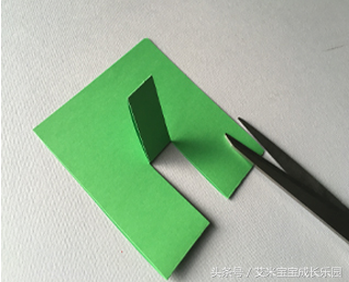 制作步骤1.剪出绿色大长方形,从中间对折,并在对折后的卡纸中间剪出长方形条,可做花茎。