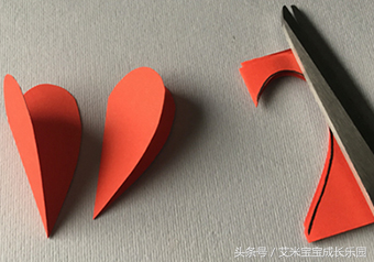 制作步骤2.用红色卡纸剪出2个心形做花瓣。