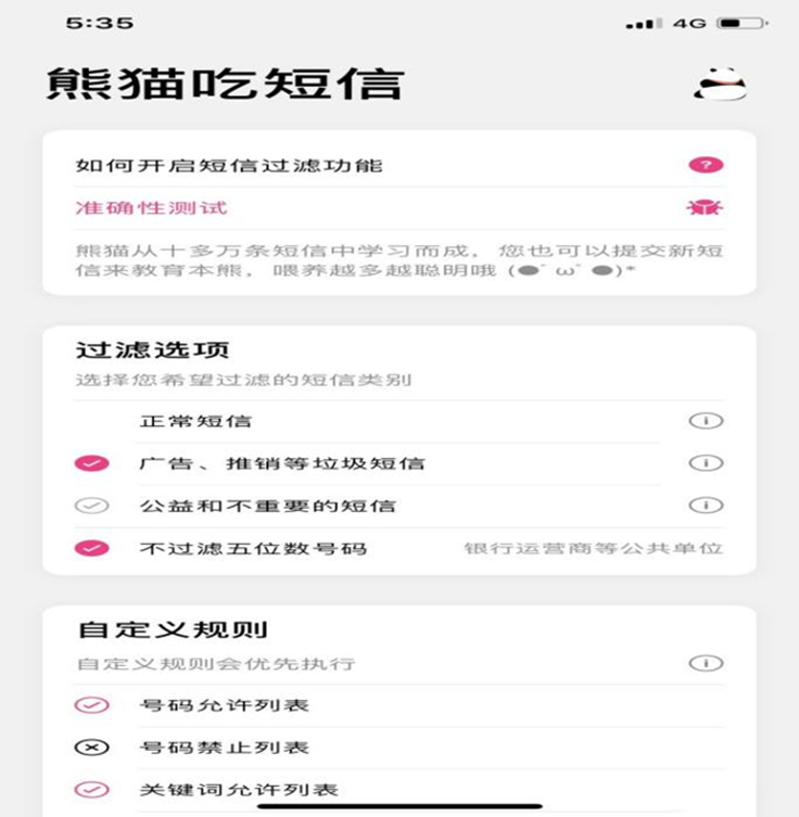 由于越来越多的苹果用户受到了垃圾短信的困扰,也让开发商发现了商机,开始研制对其有阻拦功能的拦截应用软件,例如目前市场上较火的某熊猫APP。不过我们要注意的是,在应用软件拦截垃圾短信的同时,也会读取我们本身的imessage消息。