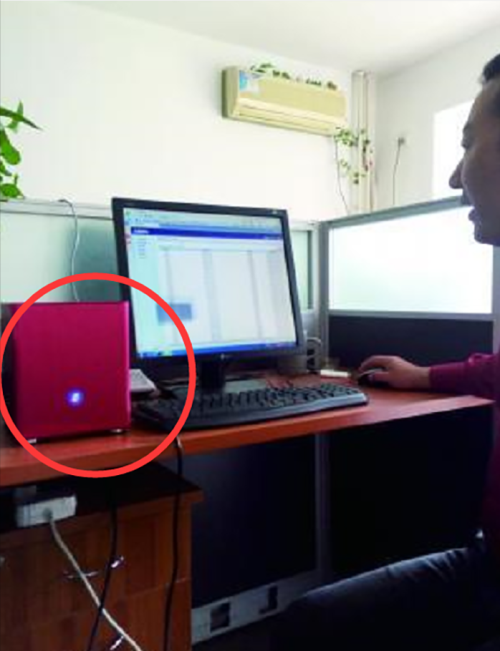 代理商演示发送垃圾广告,红色盒子为专用设备