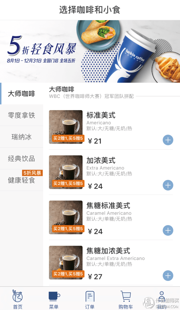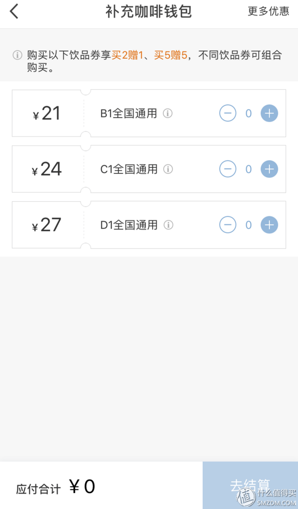 除了轻食以外的所有饮品,均买2赠1,买5赠5。如果一次性消费不了多杯,也有别的方法享受优惠。在瑞幸APP里有一个“咖啡钱包”,可以购买三个价位的饮品券,饮品券也享受“买2赠1,买5赠5”的政策,也就是花5张的钱可以买到10张,并且可以分次慢慢使用!非常适合趁着瑞幸现在优惠期囤货!