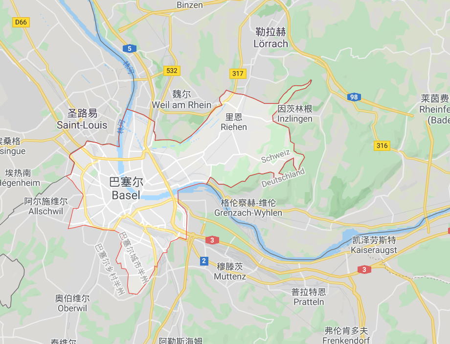 下面是瑞士联邦的巴塞尔城市州巴塞尔市的结构,这也是一个地跨法国、德国、瑞士的结构。