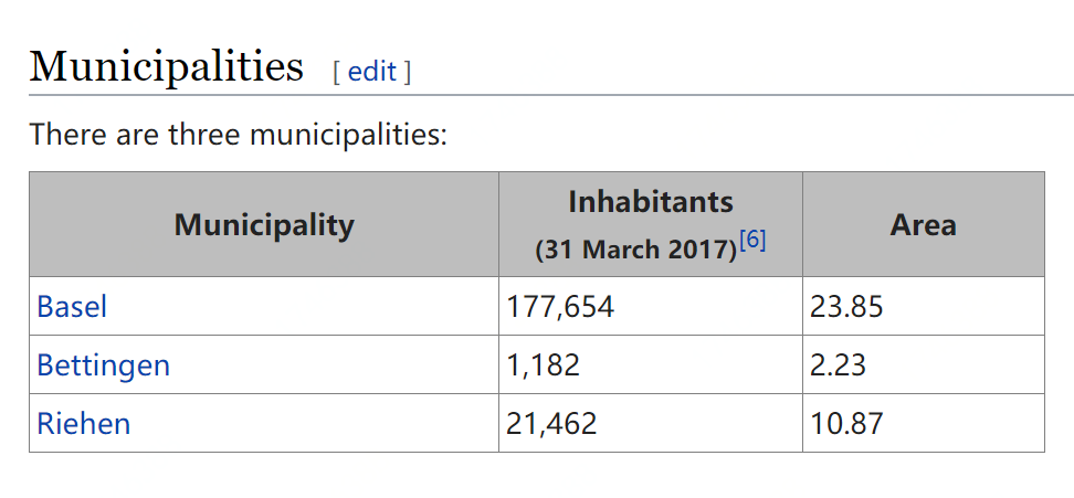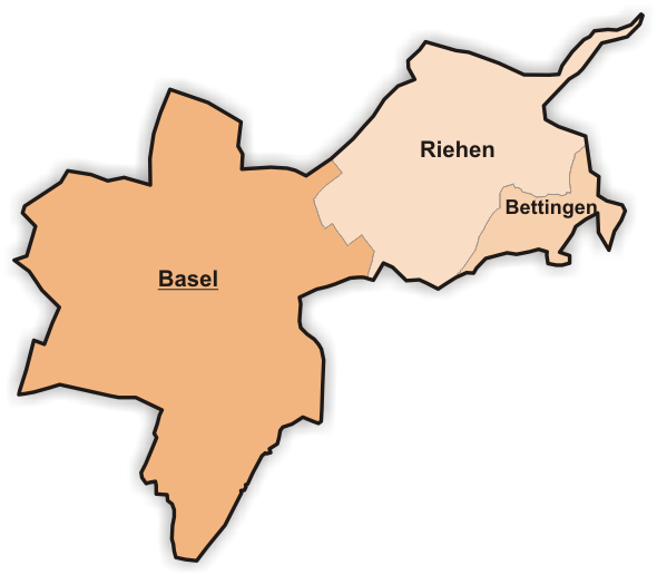 巴塞尔市(Basel)人口168000 里恩镇(Riehen),人口20800 贝廷根镇(Bettingen),人口1200