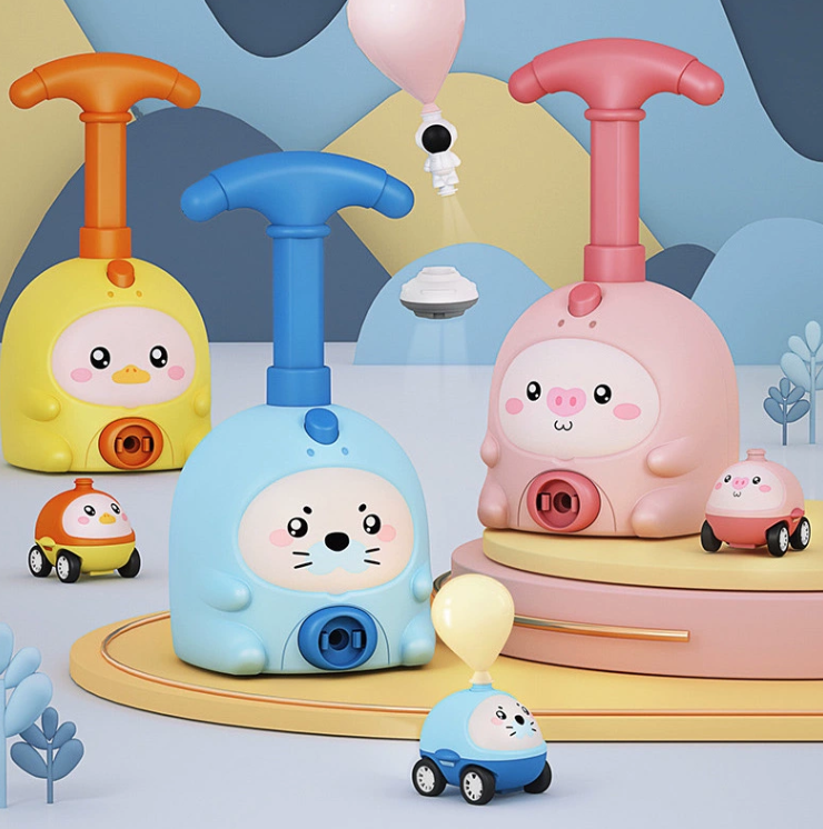 现在的玩具也是长见识,小礼酱发现一款空气动力玩具,配了一个打气筒,还有个小车车,上面再放气球,连接好打气后气球就会鼓起来,按下打气筒的出发按钮小车车就出去了。