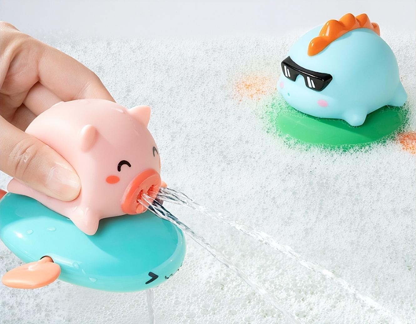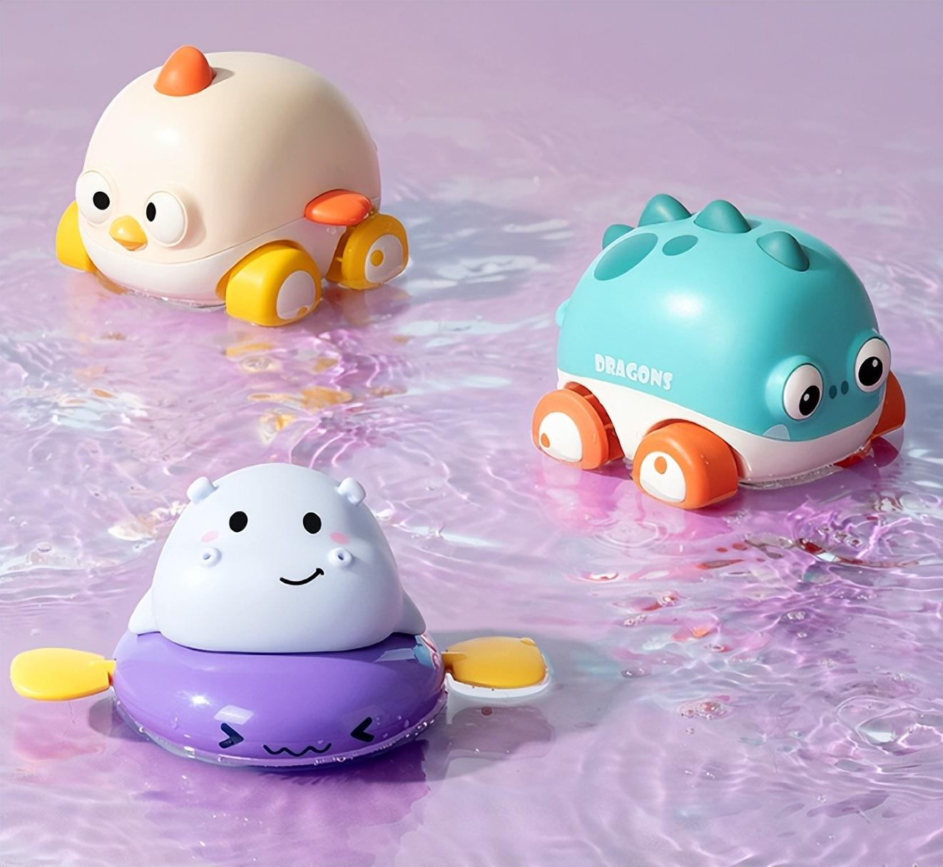 水上的玩具还可以挤压出水,也是增加可玩性,小车车造型跑动的时候眼睛还会转动,身上的翅膀、背脊也是采用TPR软胶材质,抗摔打,小宝贝啃咬也不伤嘴。