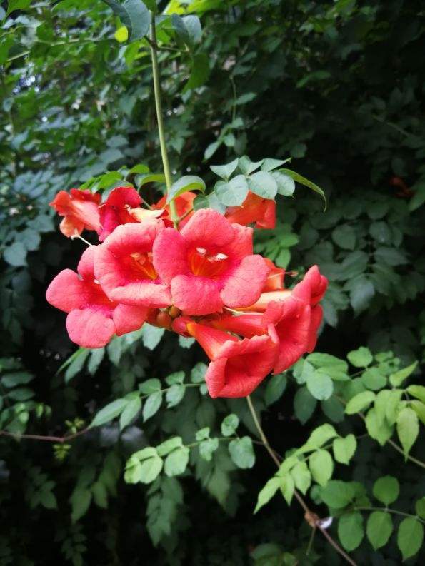 凌霄花花色很鲜艳,和平常见的很多花都不一样,要是让它随意长,它都可以爬到天上去,真是非常美丽!在盛夏的时候,经常可以看到它,在蓝天的衬托下,显得分外妖娆,感觉就是它的天下了。家里养凌霄花真得非常新奇,一点都不俗气,可以很好的装饰房间。要是养在阳台就会开得更好看,因为它喜欢阳光。