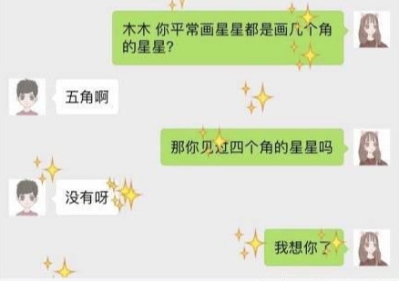 情侣间有个很好玩的落星星的游戏,我不允许你不知道!在聊天框输入“我想你了”,会有满屏星星落下,这个女孩子都知道吧,这时候你可以这么说: