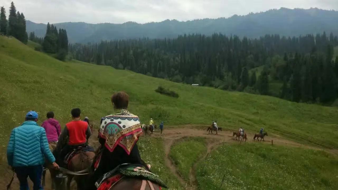 去年七月份我再来拉拉提大草原,这样160块钱骑两个小时马的项目已经不存在了。因为现在来新疆旅游的人太多,花上100块钱只能在牧场上骑上一大圈。