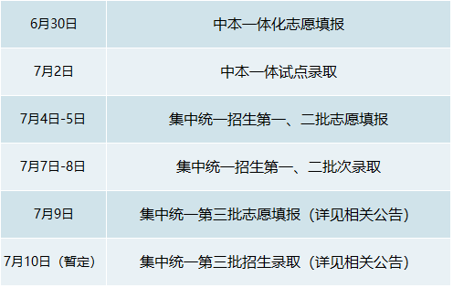 各批次的志愿填报及录取时间安排如下: