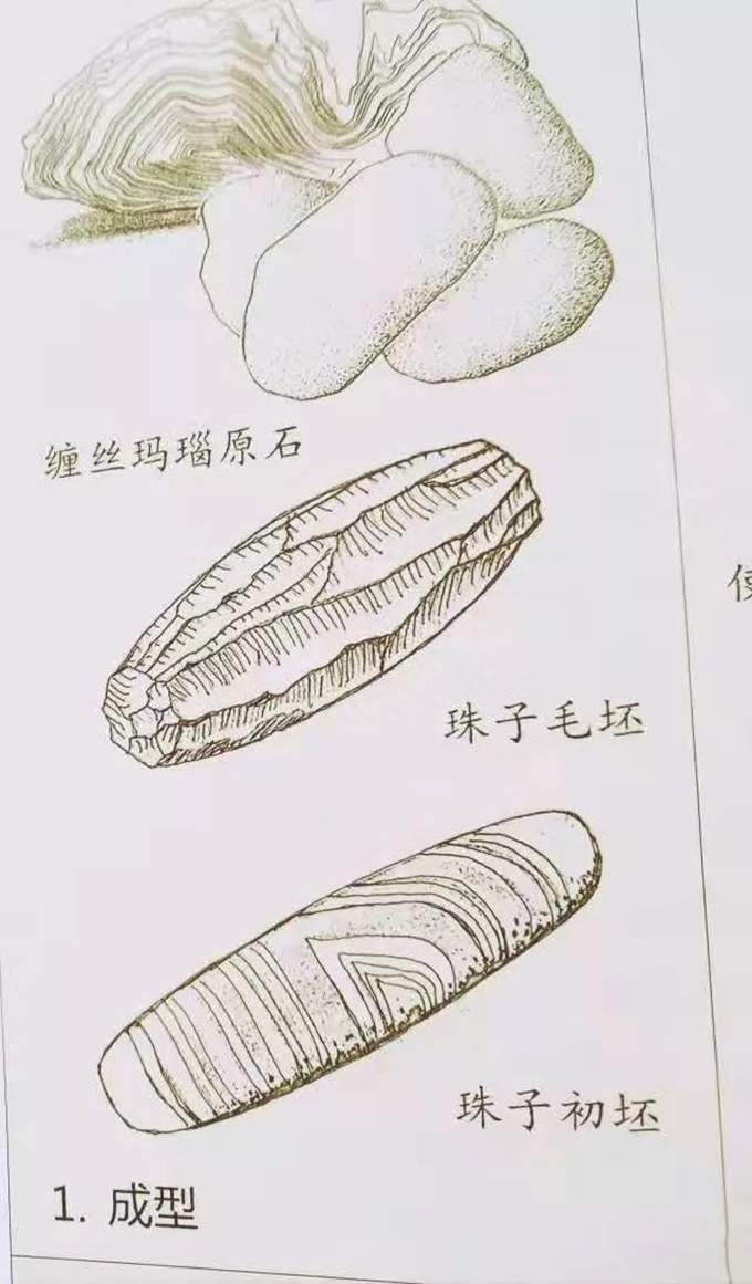 首先是找到缠丝玛瑙原石作为制作天珠的材料,这些原石的形状各不相同,所以就要进行最初的切割,把它的形状切成天珠毛坯。但是由于玛瑙原石的硬度比较高,在切割的时候就会留下很多棱角。