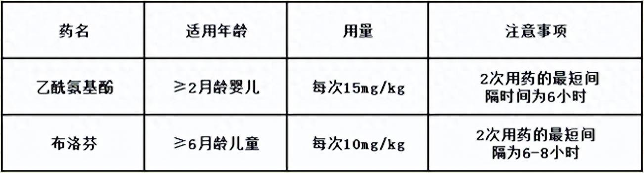 世界卫生组织推荐儿童退热药有乙酰氨基酚与布洛芬,且不推荐乙酰氨基酚与布洛芬联合或交替使用。这两种药物的具体用量,根据体重的不同而有所区别,具体可参考下表: