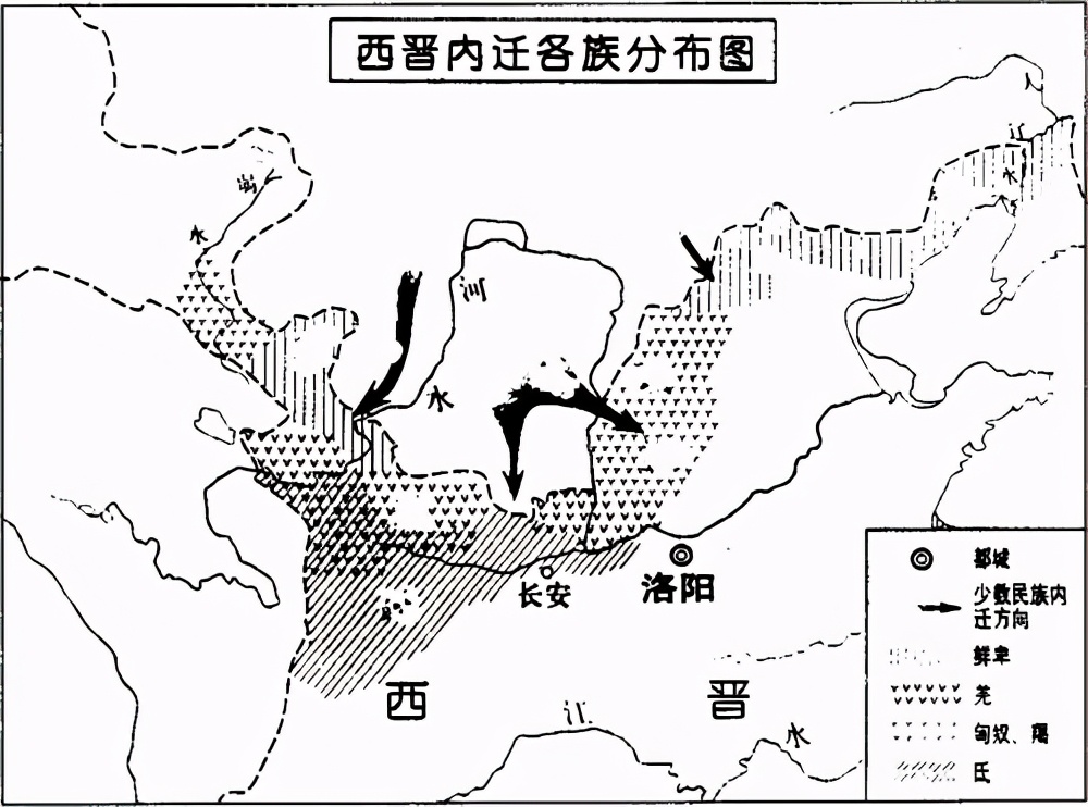 内迁的少数民族,主要是匈奴、鲜卑、羯、氐、羌,因此后人常以“五胡”代之。尽管五胡乱华发生在西晋灭亡后,但是早在西晋立国之初,就面下了民族歧视的恶种。他们向内迁的各族人民征收重税,征兵派役,甚至掠卖少数民族人民为佃客、奴婢。少数民族迁入中原后,要“服事供职,同于编户”,明确租调负担,常常是残酷的压迫在身。不堪重负的少数民族首领,趁机起兵反晋。