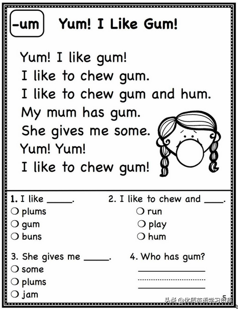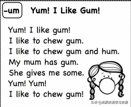 今天分享一篇阅读理解。这篇阅读可以练习um的发音,也可以作为日常阅读材料。