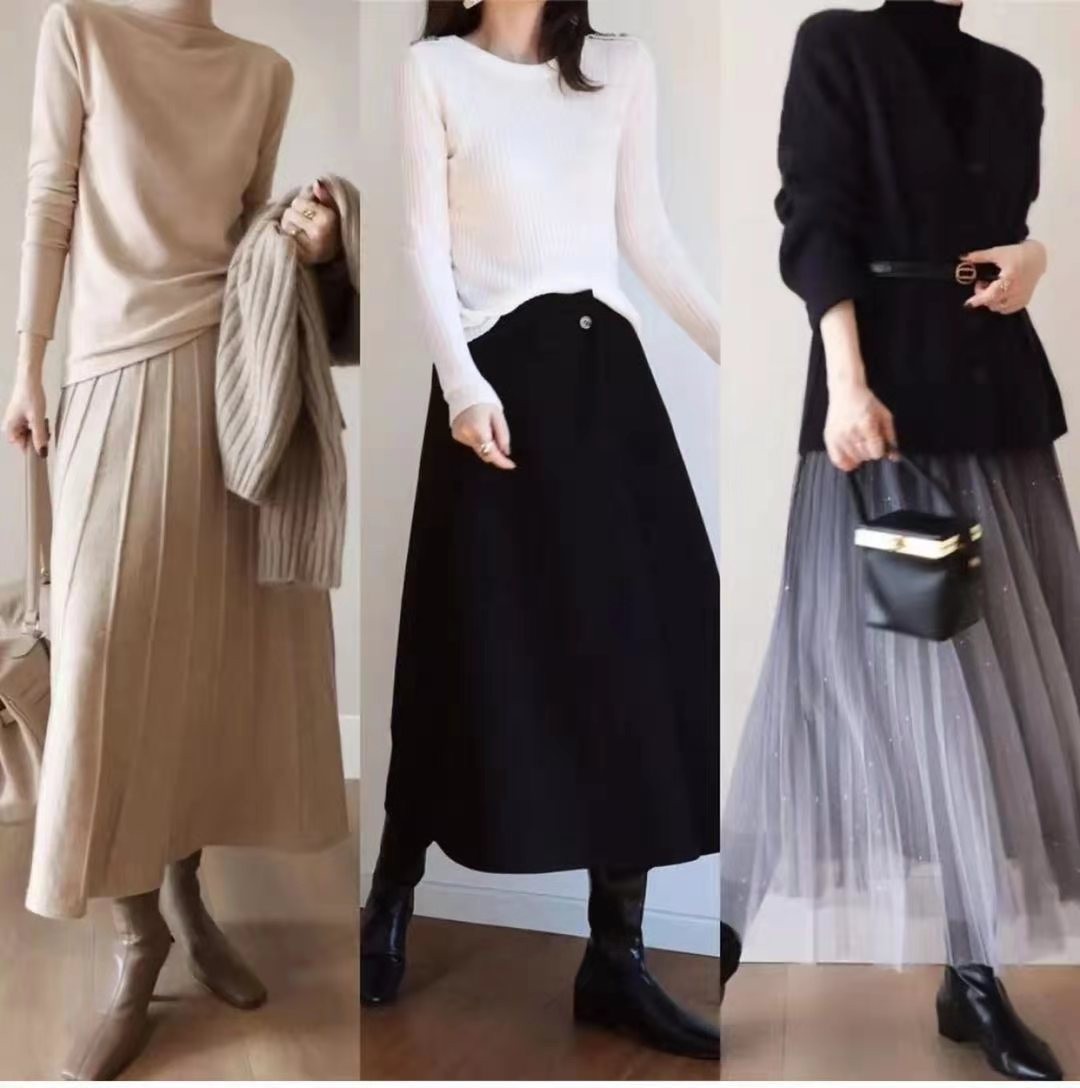 毛衣和半身裙之间的搭配既浪漫又减龄,是永远不会出错的神仙cp,展现出了轻盈和温柔的感觉。尤其是大地色系之间的搭配,杏色或者是奶白色的裙装展现了春日的温柔。