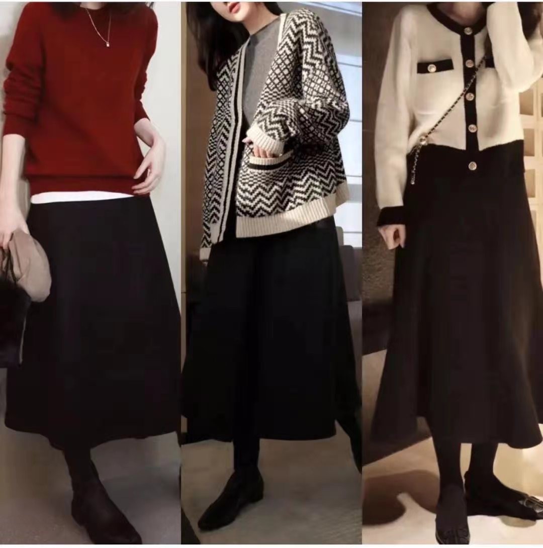 黑色也是基础色系当中的一员,也是经典永不败的颜色,在一年四季当中,黑色时常都能够见。将黑色或者是大地色系融入到温柔的针织单品之中,就会变得更加的温柔且突出层次感。黑色的针织连衣裙搭配长筒靴,展现出了职场女性的气场,适合这个年龄段。