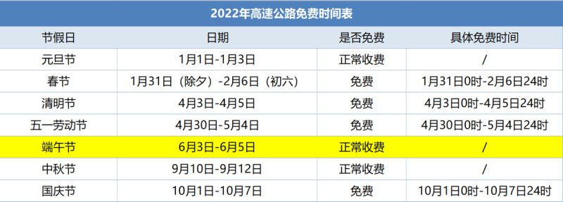 端午假期(6月3日-6月5日)高速公路照常收费。