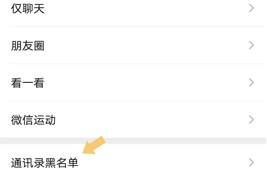点击进入“朋友权限”选项,在弹出界面的最下方找到“通讯录黑名单”选项。如下图: