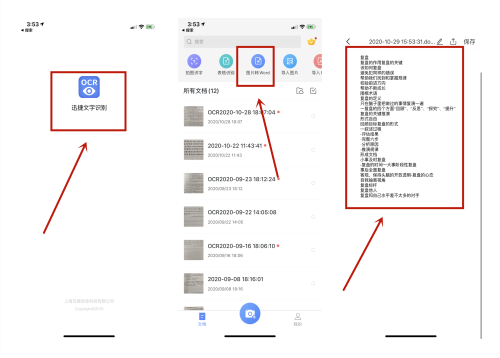 可一次性上传多张图片进行识别。识别出的文字可以进行翻译、复制、分享等操作。