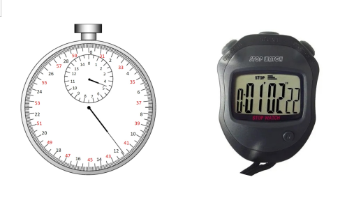 实验室测时间的工具是停表,常见的停表有:机械停表(左)和电子停表(右)。
