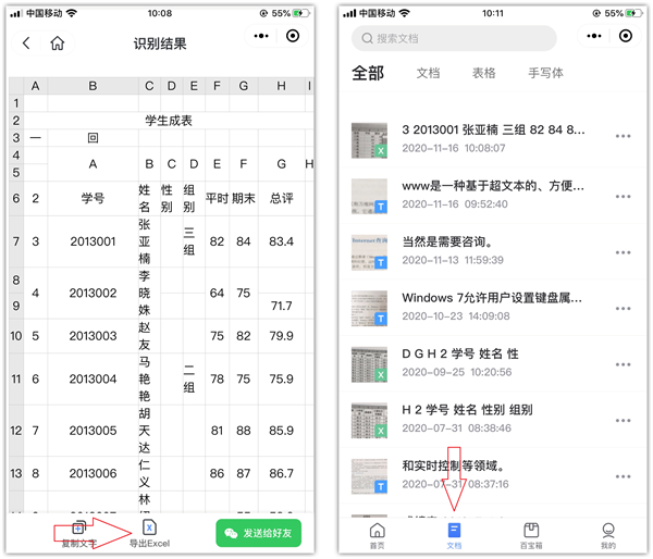 7、最后点击【立即识别】按钮后,就可以将纸质表格扫描成Excel电子表格,对于我们扫描识别过的所有文件,都保存在【文档】里面。