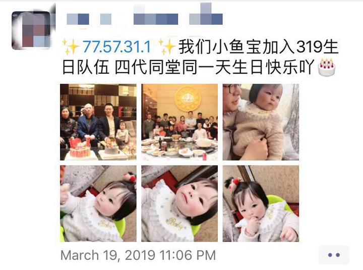 生日会当天,俞黎丽欢快地在朋友圈写下:“77岁,57岁,31岁,1岁。恭喜我们小鱼宝加入319生日队伍,四代同堂同一天生日快乐!”