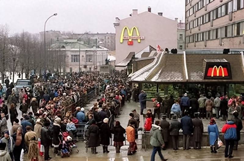 1990年1月,麦当劳首次亮相莫斯科,当天就接待3万人。人们排着长长队伍,在寒风中瑟瑟发抖。