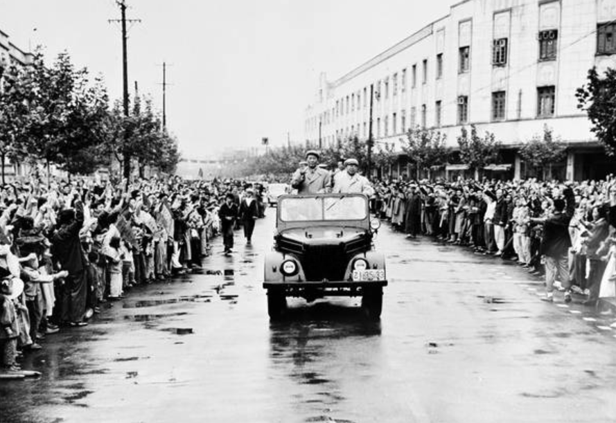 这是毛主席第一次也是唯一一次视察途中,乘敞篷车大规模接见市民。