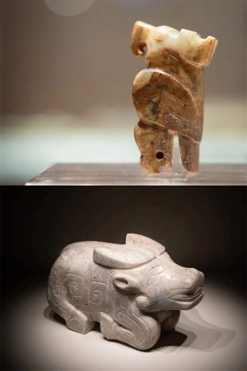 殷墟的石器与玉器:石牛,玉鸮。摄影/柳叶氘