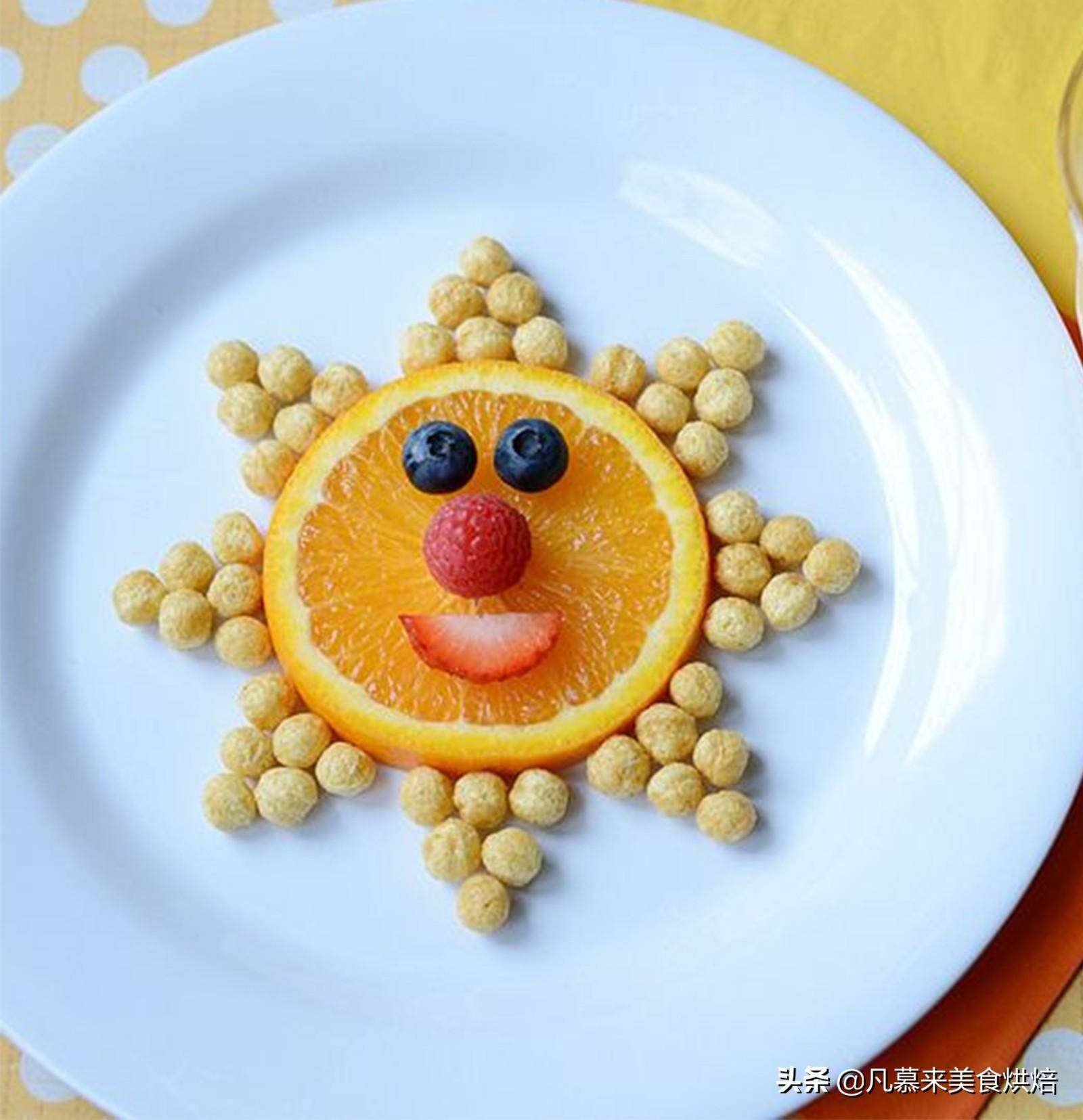 19、笑脸:橙子做的笑脸,蓝莓,树莓,草莓,泡芙搭配。