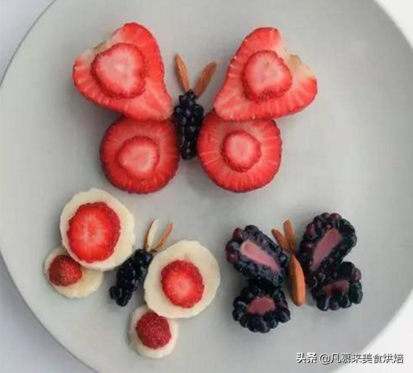 52、蝴蝶纷飞:草莓、桑葚做的蝴蝶纷飞,可爱又好吃。